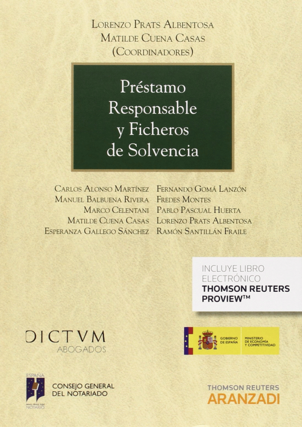Préstamo responsable y ficheros de solvencia Lorenzo Prats Albentosa, Matilde Cuena Casas (coordinadores) ; autores, Carlos Alonso Martínez ... [et al.]