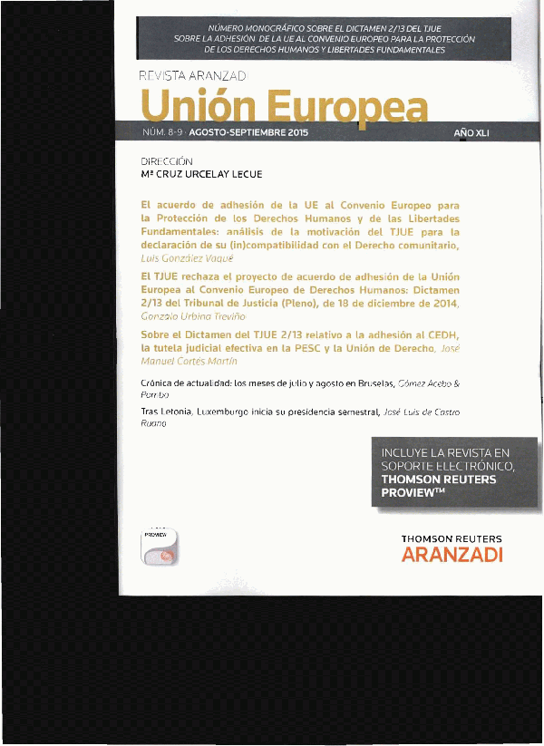 [Número monográfico sobre el Dictamen 2/13 (TJCE 2014, 368) del TJUE sobre la adhesión de la UE al Convenio Europeo para la protección de los derechos humanos y libertades fundamentales] Dirección, Mª Cruz Urcelay Lecue