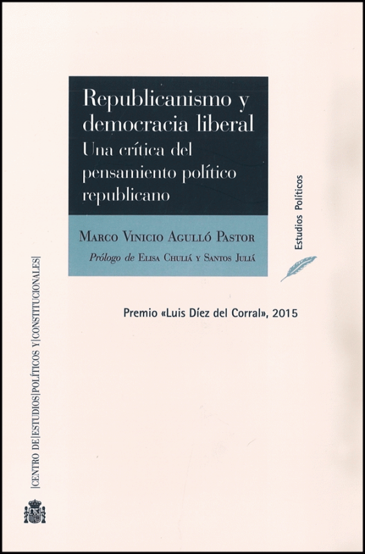 Republicanismo y democracia liberal : una crítica del pensamiento político republicano Marco Vinicio Agulló Pastor ; prólogo de Elisa Chuliá y Santos Juliá
