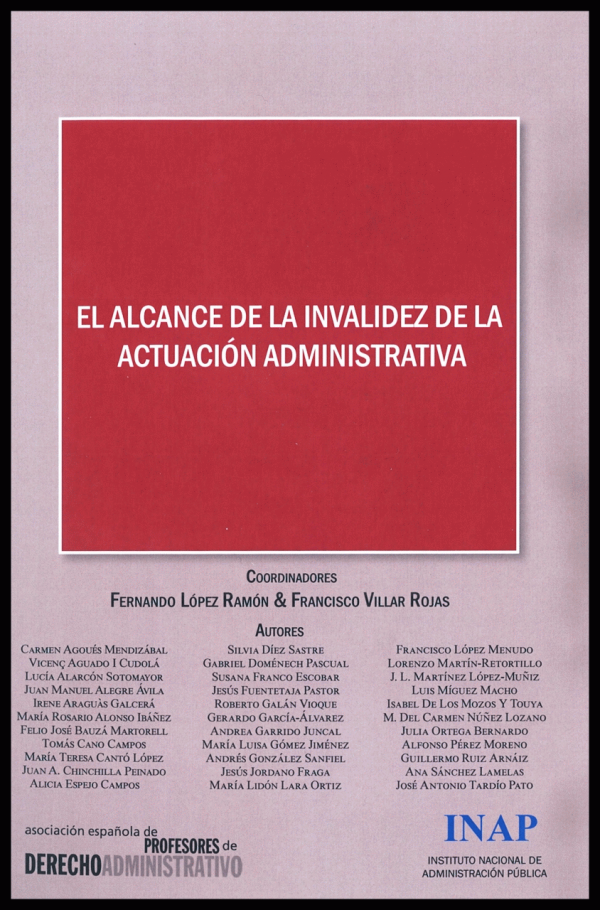 El alcance de la invalidez de la actuación administrativa : actas del XII Congreso de la Asociación Española de Profesores de Derecho Administrativo, La Laguna, 3 y 4 de febrero de 2017 coordinadores, Fernando López Ramón & Francisco Villar Rojas ; autores, Carmen Agoués Mendizábal ... [et al.]