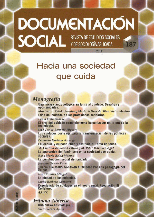 En: Documentación social: revista de estudios sociales y de sociología aplicada Madrid N. 187 (2017), 232 p. - Loc. S.172
