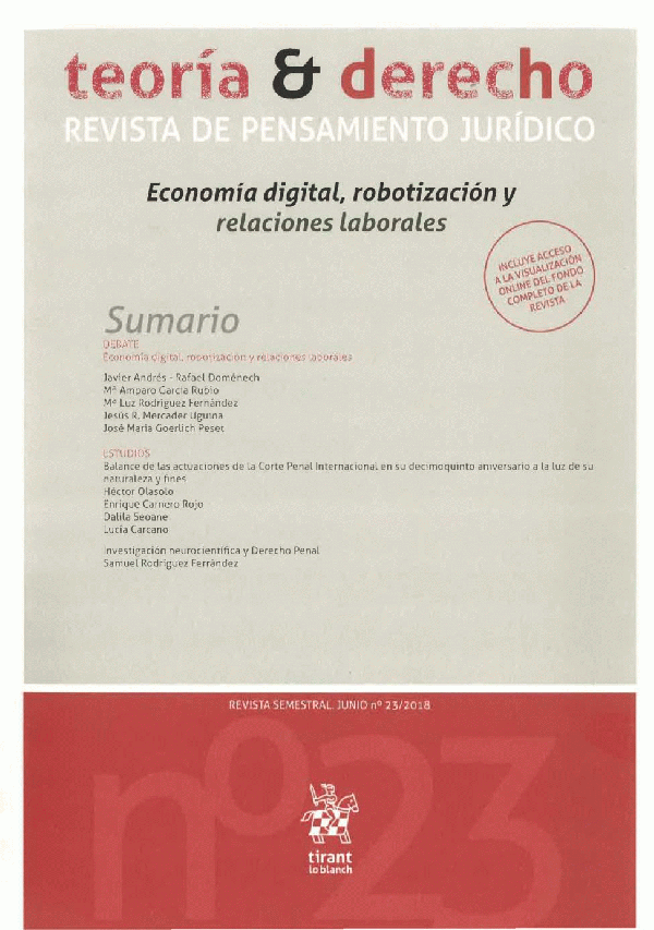 En: Teoría y derecho: revista de pensamiento jurídico Valencia N. 23 (jun. 2018), 129 p. - Loc. S.516