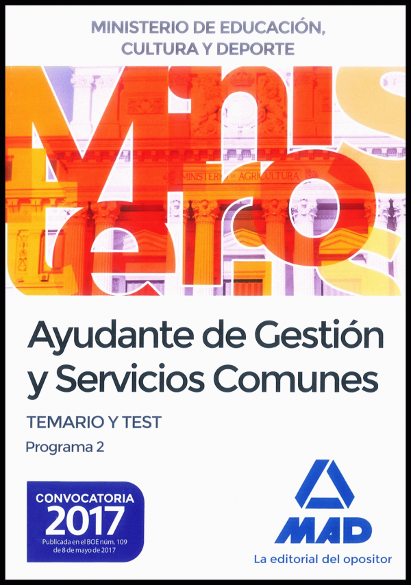 Ayudante de gestión y servicios comunes del Ministerio de Educación, Cultura y Deporte : temario y test programa 2 [autor, Vicente Carlos Morán Alario]