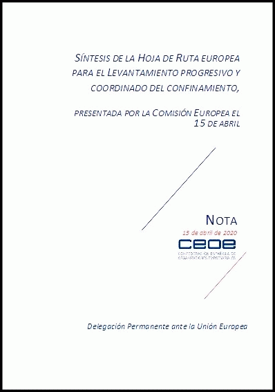 Síntesis de la hoja de ruta europea para el levantamiento progresivo y coordinado del confinamiento presentada por la Comisión Europea el 15 de abril [Recurso electrónico] Delegación Permanente ante la Unión Europea