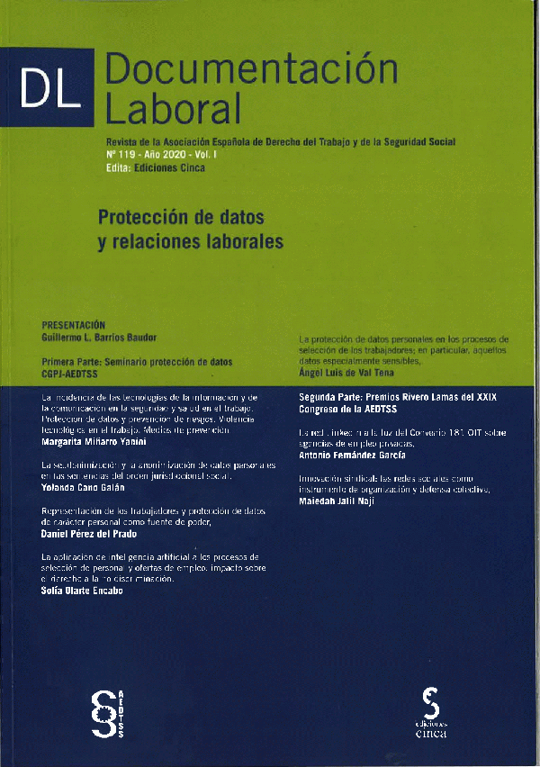 El presente monográfico recoge los artículos derivados del "Curso sobre protección de datos y relaciones laborales que la Asociación Española de Derecho del Trabajo y de la Seguridad Social llevó a cabo en colaboración con el Consejo General del Poder Judicial los pasados días 22, 23 y 24 de enero de 2020"