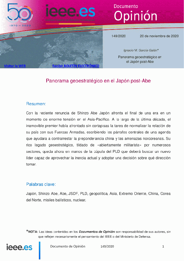 Panorama geoestratégico en el Japón post-Abe [Recurso electrónico] Ignacio M. García-Galán