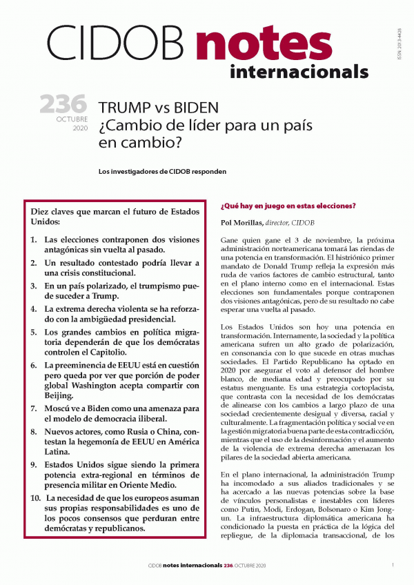 Trump vs Biden ¿Cambio de líder para un país en cambio? CIDOB [Recurso electrónico]