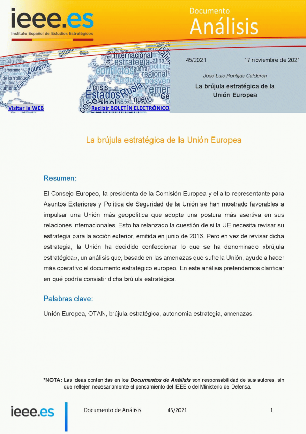 La brújula estratégica de la Unión Europea [Recurso electrónico] José Luis Pontijas Calderón
