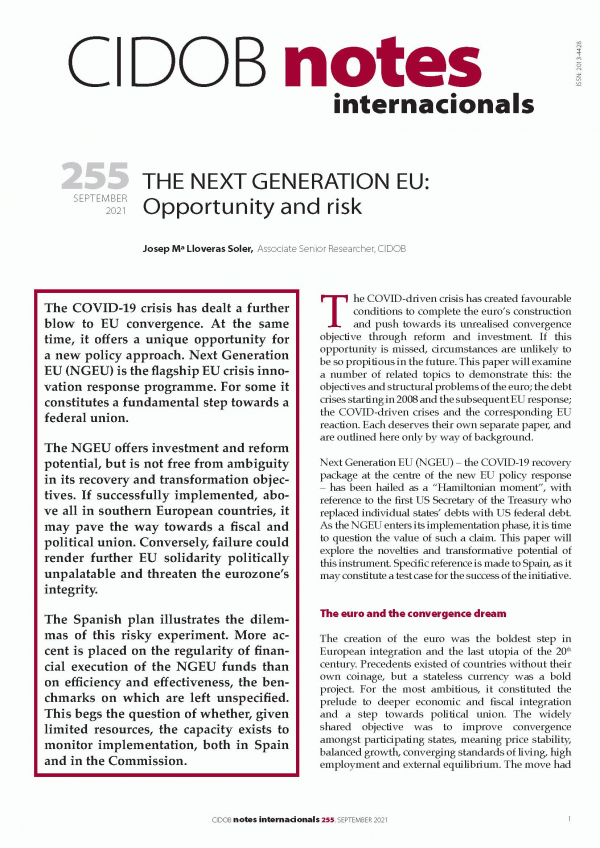 The Next Generation EU [Recurso electrónico] : opportunity and risk Josep Mª Lloveras Soler