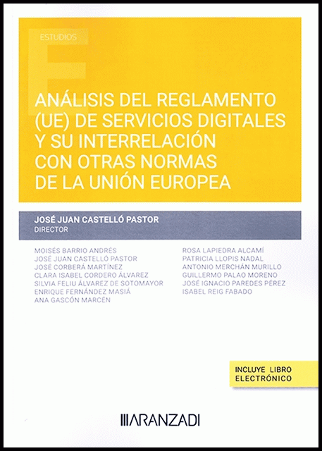 Análisis del reglamento (UE) de servicios digitales y su interrelación con otras normas de la Unión Europea José Juan Castelló Pastor, director; autores, Moisés Barrio Andrés.. [et al.]